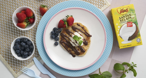 Tuangkan Santan Kelapa M&S ke atas roti canai frozen.